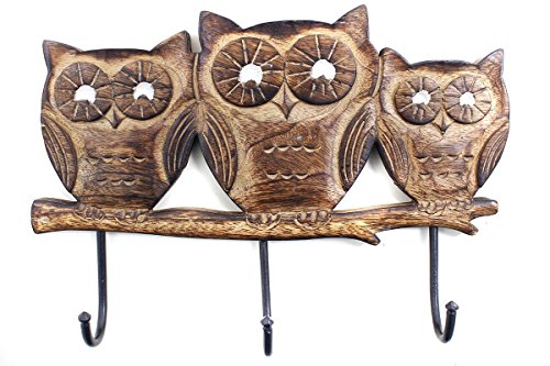 Store Indya Owl Shaped Wooden Wall Key Holder with 3 Hooks