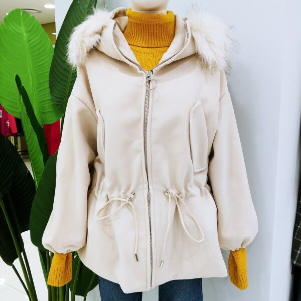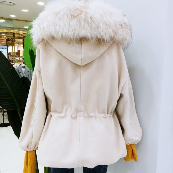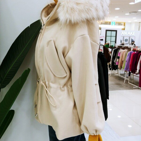 벌룬소매에 허리 스트링까지 잡아주면 발랄함과 여성스러움이 물씬~~^^후드 털은 탈부착 가능하며 안감 누빔이라 보성까지 굳!가격까지 착하다는..ㅎ