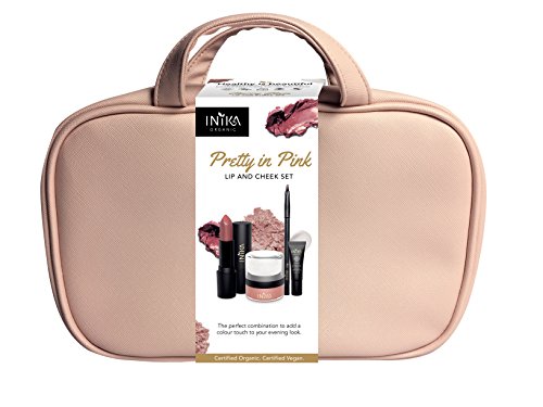-. Title : Inika Lip & Cheek Set, Gift Set All Natural Makeup , Organic P.R.Imer, Mineral Puff Pot , Organic Vegan Lipstick , Vegan Lip Brush, Vegan Travel Makeup Bag, Pretty in Pink