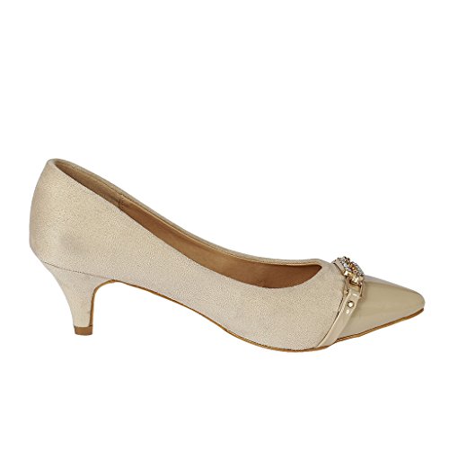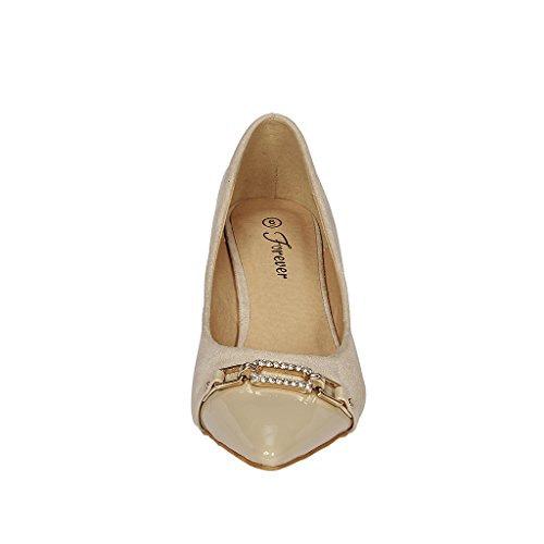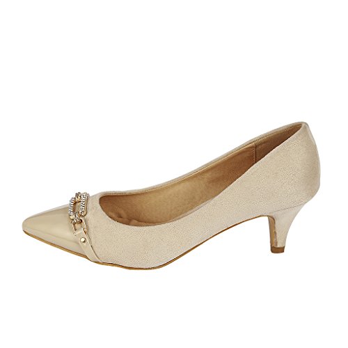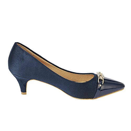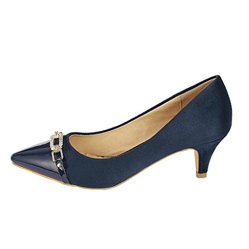 -. Title : Coshare Women's Fashion Patent Embellished Front Low Heel Pumps
