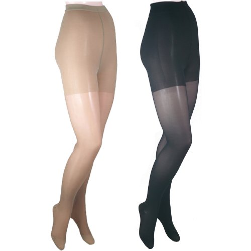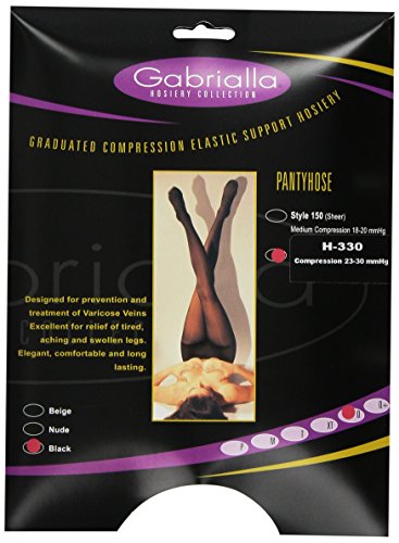 GABRIALLA Sheer Pantyhose - Compression (23-30 mmHg): H-330, 2 Count, Queen, Beige/Black