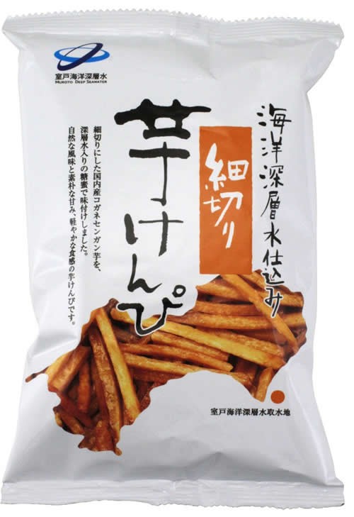 | 国内の契約農家で大切に育てた「黄金千貫」という品種のさつま芋を細切りにし、室戸岬沖からくみ上げた海洋深層水入りの糖蜜で味付けしました。植物油(米油・なたね油・パーム油)を使うことによって、クセがなくあっさりとした味に仕上がっています。自然な風味と素朴な甘さを追求したこだわりの一品です。 |