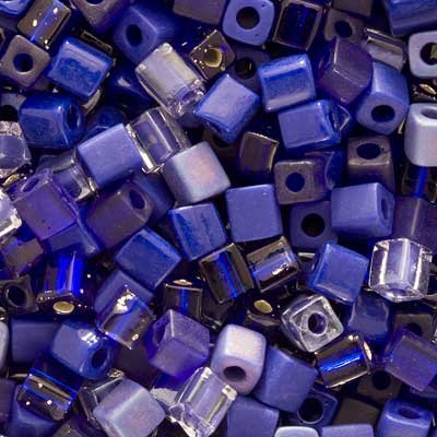 Miyuki 4mm Glass Cube Bead Mix Cobalt Medley Blue 10 Grams