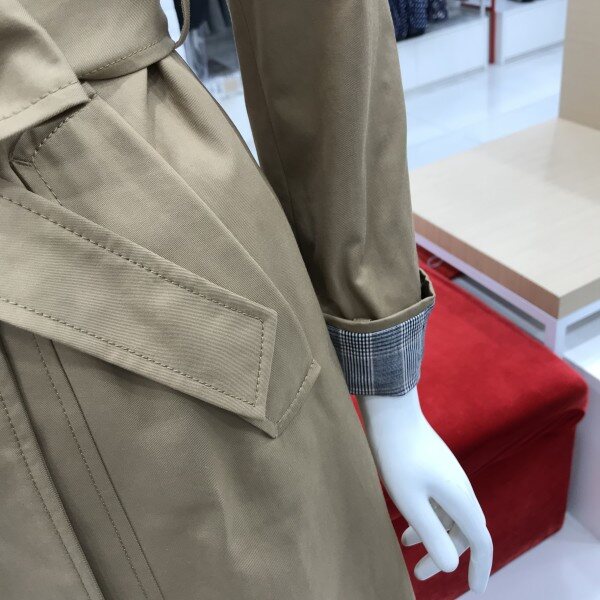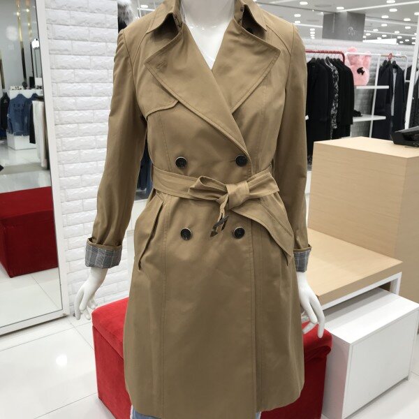 기본 트렌치코트로 슬림하게나온스타일입니다매년나오는 기본트렌치코트로 잇아이뎀입니다소매부분 체크장식으로포인트를주었어요