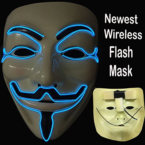 -. Title : Wireless masquerades masks / guy fawkes mask / halloween mask / light up mask / fawkes mask / Dj mask / wireless mask with on and flash by one size filled most face
