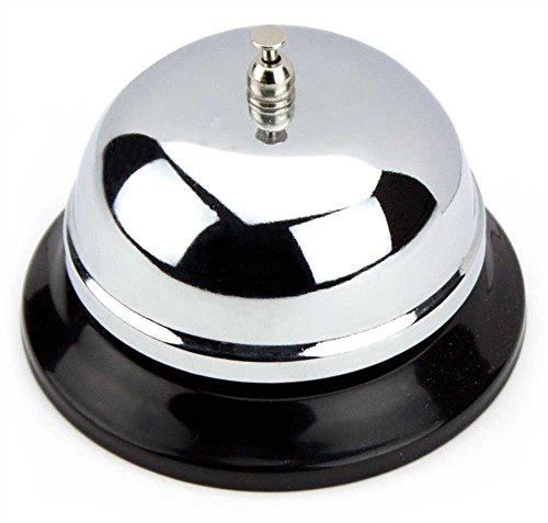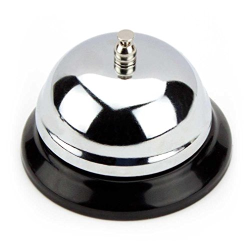-. Feature : Choose your own pitch: 6cm, 8.5cm, and 10cm bells available, each with a different tone / Rings loud and clear, with none of the muffling caused by cheap plastic components / Durable carbon steel bell and ringer with a showy chrome finish / Classic, timeless design with black plastic base / Stands up to tough restaurant use, also great for hotel and office receptionists, even games of Bunco