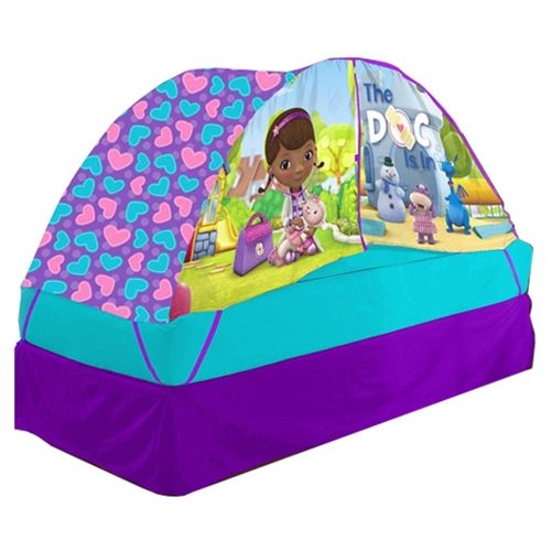 -. Binding : Toy -. Brand : Disney -. Color : Unknown -. EAN : 0784857529340 -. Feature : Features unique Doc McStuffins design that is great for decorating any bedroom or playroom / Playful addition to any twin-sized bed with pushlight included - for indoor use only / Easy to clean with damp cloth and mild soap / 104 percent polyester with elastic corded poles for easy adult assembly / Dimensions: 32.5" L x 72" H x 36" W -. IsAdultProduct : 0 -. ItemPartNumber : RK318032 -. Label : Idea Nuova - LA -. Manufacturer : Idea Nuova - LA -. Model : RK318032 -. MPN : RK318032 -. PackageQuantity : 1 -. PartNumber : RK318032 -. ProductGroup : Toy -. ProductTypeName : HOME -. Publisher : Idea Nuova - LA -. Studio : Idea Nuova - LA -. Title : Disney Doc McStuffins Bed Tent with Pushlight -. UPC : 784857545364 -. Warranty : No Warranty