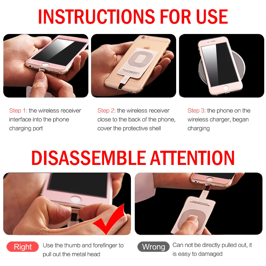applicable model 1:Wireless Charger Receiver For iphone 7 5 5S 5 SE 6 6S Plus etc