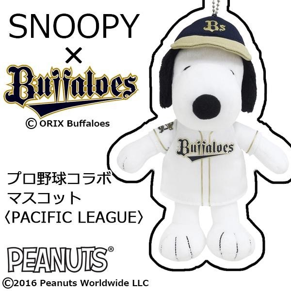 人気キャラ「スヌーピー」が「オリックスバファローズ」と可愛いコラボ☆ユニホームと帽子をかぶった可愛いマスコットです。野球観戦のお供に♪