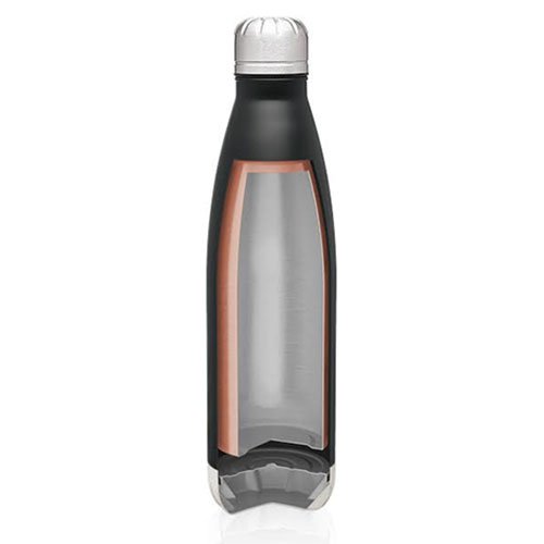 Elegent, yet durable design incorporating excellent fit and finish from high quality grade materials. Copper plated inner wall prevents heat from entering or exiting the bottle by thermal radiation.