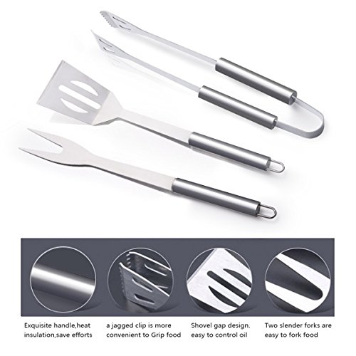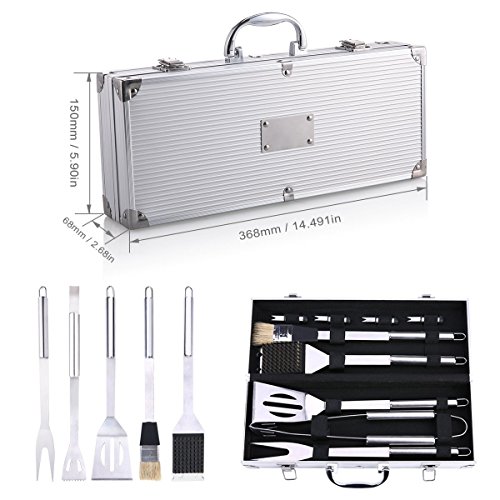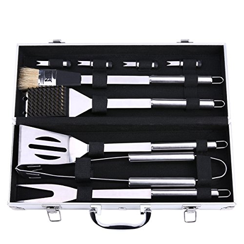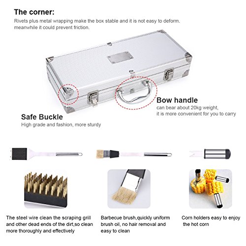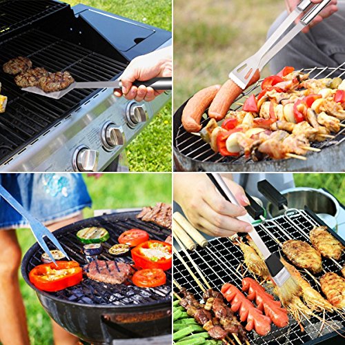 Grade stainless-steel- Portable weather-proof aluminum case keeps tools conveniently organized and easy stored. and all the tools are made from professional grade stainless-steel which is super strong,study and durable for you to handle BBQ and Grilling needs.about 12 inch Elongated handles keep your hands safe from the heat. all tools are dishwasher-safe