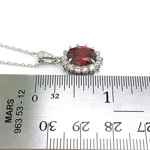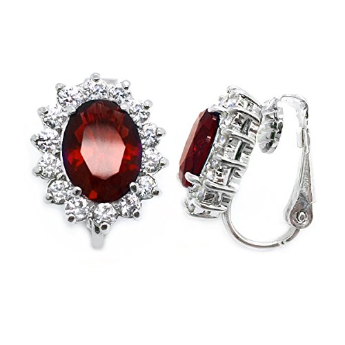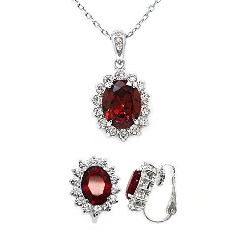 This lovely set consists of pendant necklace with matching clip on earrings. They are made of brass and plated with rhodium for added shine and luster. A sparkling red oval CZ acts as the centerpiece and surrounded with small round clear CZs. Pendant comes with 16" chain and clip on backings ensure these earrings can be worn by you or your bridesmaids regardless if your ears are pierced or not. This jewelry set will make the perfect choice for your special someone for Valentine's gift, Christmas gift, Mothers day gift, Birthday gift, Anniversary Gift, or Bridal party gifts.Feature