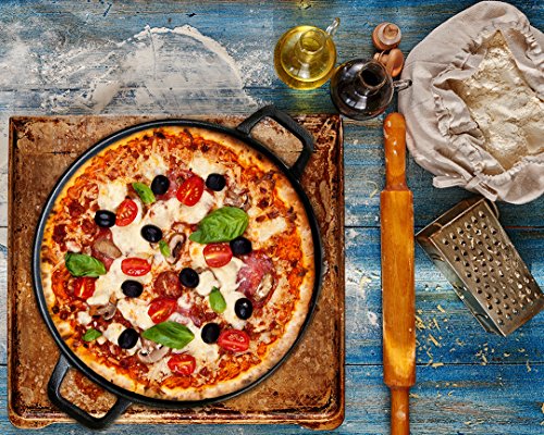 -. Title : Cast Iron Griddle Pizza Pan - Pre Seasoned Grill, Reversible, Stove Top with Dual Handle Black, 14-inch by Utopia Kitchen