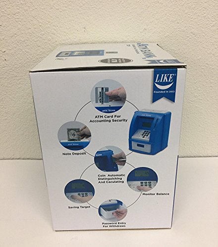 -. Feature : Functions like a real ATM. Works with real bill and coins. Deposit, Withdraw, Debit Card, Saving Target, Timer and Clock / Perfect Learning Tool to Instill Money Saving Skill / Require 3 x AA Batteries (not included) / Absolutely No Fee for deposit, withdraw and Overdraft Ever / Can be mounted easily on wall