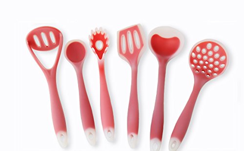 -. Title : Joyoldelf 6 Piece Premium Silicone Kitchen Baking Set - Flat Spatula , Regular Turner & Pasta Spoon - Soup Ladle - Spoon - Large Drainin (Red)