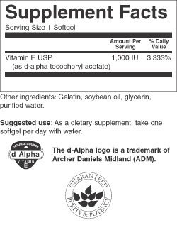 -. Binding : Health and Beauty -. Brand : Swanson Premium -. Feature : One of the most important nutrients for maintaining a healthy cardiovascular system / All natural vitamin E provides valuable antioxidant protection for vital tissues / Convenient softgels deliver 1,000 IU of natural d-alpha tocopherols -. Label : Swanson Premium Brand -. Manufacturer : Swanson Premium Brand -. PackageQuantity : 1 -. ProductGroup : Health and Beauty -. ProductTypeName : HEALTH_PERSONAL_CARE -. Publisher : Swanson Premium Brand -. Studio : Swanson Premium Brand -. Title : Natural Vitamin E 1,000 IU 250 Sgels