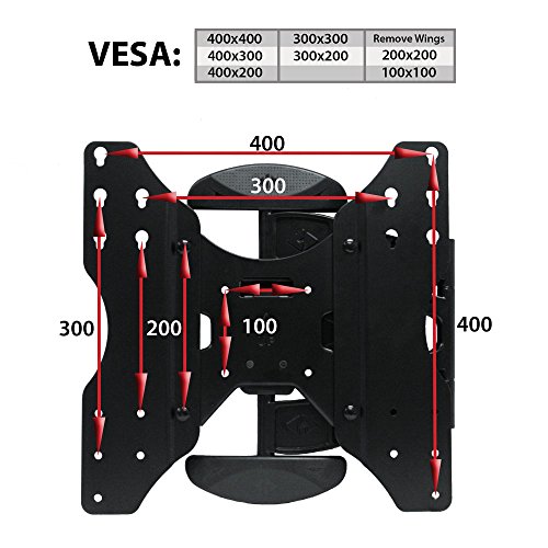 -. Feature : Ultra-slim profile of only 1.8 inches when recessed. / Maximum extension from wall: 20 inches. / Full Motion TV Mount with superior strength design, certified to hold four times its rated weight of 80 lbs. / Die Cast Aluminum TV Mount built for 23 to 55 inch LED and LCD displays. / Wall mounting hole patterns supported from 100 x 100, 200 x 200, 200 x 100, 300 x 300, 400 x 400.