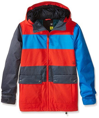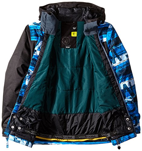 Volcom cheifdom insulated jacket features 8,000mm waterproofing, 8,000 gm breathability with an 80 gm poly fill insulation for all day warmth. Technical details include critical taped seams, zip tech jacket to pant interface, fixed hood with helmet compatability, super suede chin guard, mesh lined zipper vents, adjustable powder skirt, tricot lined hand warmer pockets, grow-tech and stone ticket ring. Grow-tech technology allows you to to add length to your sleeves or pant hem so you can enjoy your outerwear as you grow.Feature