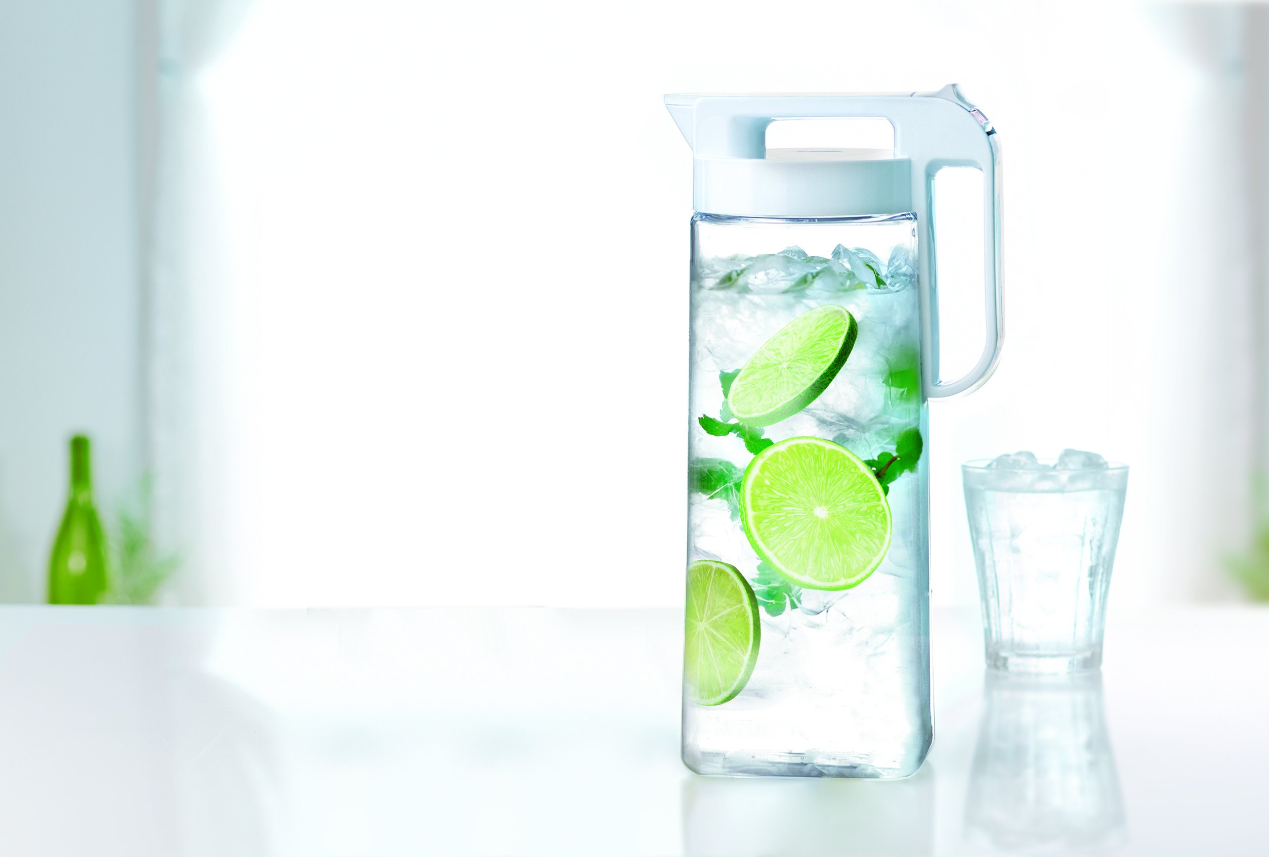 ● Depth is the same size as 2L PET bottle, fits neatly in the door pocket of the refrigerator.