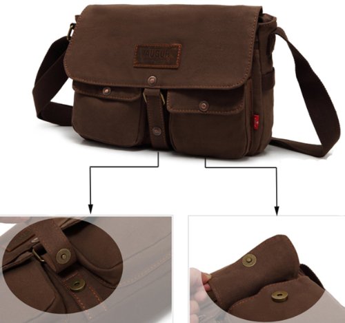 - Title : CLELO Mens Canvas Leather Travel School Casual Messenger Shoulder Crossbody,Coffee