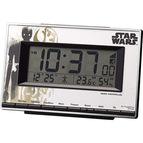 | 主な仕様 | サイズ:9.4×14.6×4cm アラーム音:電子音(ピッピッピッ) 表示:12時間(AM/PM)24時間表示切替 表示:温度(-9.9~50℃)湿度(20~95%) (C)&TM Lucasfilm Ltd. All rights reserved. 【数量限定商品】 ムーブメント:電波時計 型番:8RZ133MD03 |