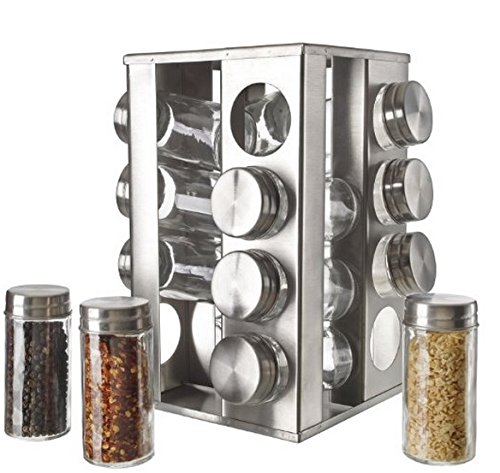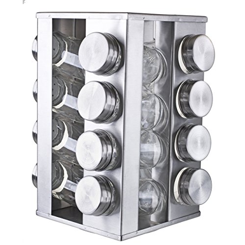 Original Cucina Italiana Stainless Steel 18/8 Spice Rack Square Seasoning Storage Organization Rotating 16 Jar