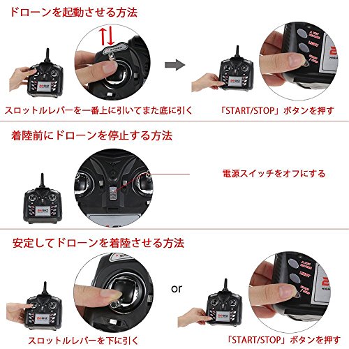 -. Feature : 0.3MP(30万画素)カメラを搭載し、スマホのディスプレイに空撮映像を表示可能です。もちろんビデオや写真を撮影することもできます。 / 高い安定性の6軸ジャイロを持ち、簡単に様々な飛行動作の制御や曲芸飛行を実現することができます。 / ヘッドレスモードで、機体の向きを確認することなく、動かしたい方向に操作ができます。 / 自動ホバリングで、初心者でも上下操作が簡単です。 / ワンキーリターン機能を持ち、飛行機を紛失することがありません。