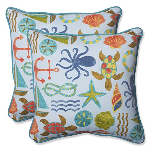 Pillow Perfect Outdoor Seapoint Summer Throw Pillow, 18.5-Inch, Blue, Set of 2