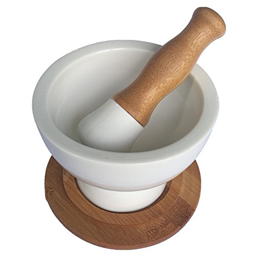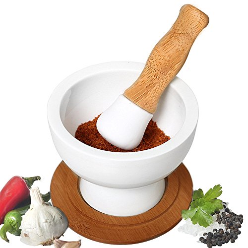 ✔ PRACTICAL DESIGNED PESTLE: The bamboo handle is ergonomically designed and feels comfortable to grip. The ceramic part of the pestle is mildew proof and is also unglazed.