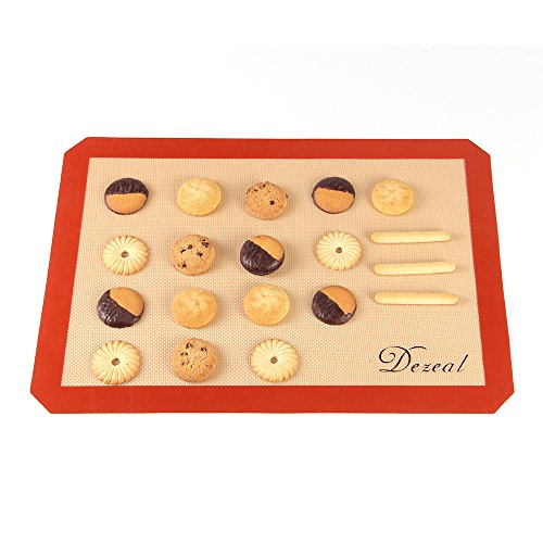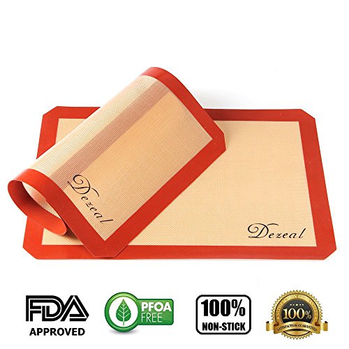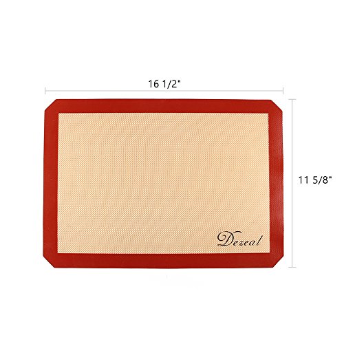 Dezeal Silicone Baking Mat Set (2) Half Sheets - . Non Stick Cookie Sheets with Red Border, 11 5/8" x 16 1/2".