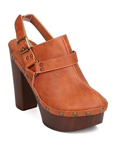 -. Title : Nature Breeze Maroon-10 Women Leatherette Studded Platform Block Heel Mule