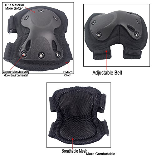 -. Binding : Misc. -. Brand : Generic -. Feature : Material: EVA high-density foam, lightweight TPU and 1000D nylon, back material lycra CoolMax. / Occasion:suitable for all kinds of different terrain do climb, kneeling position shooting etc. / Extremely light and flexible, this new design provides excellent for protection and shock absorption. / Internal lycra CoolMax keep knee pads dry, provide the comfortable feeling. / Package included:1 pair Knee pads and 1 pair elbow pads -. IsAutographed : 0 -. IsMemorabilia : 0 -. ProductGroup : Sports -. ProductTypeName : SPORTING_GOODS -. Title : Military Tactical Protective Knee Pad Elbow Support Set 4 Pack Sports Safety Protector Gear Cycling Hunting Shooting Pads
