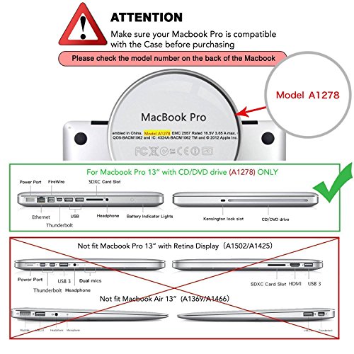 Specifically designed for the Old MacBook Pro 13 Inch (A1278 with or without Thunderbolt, Version Early 2012/2011/2010/2009/2008) Aluminum Unibody with CD-ROM Drive.
