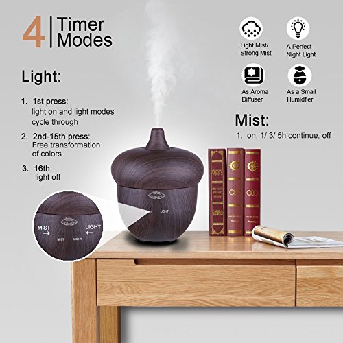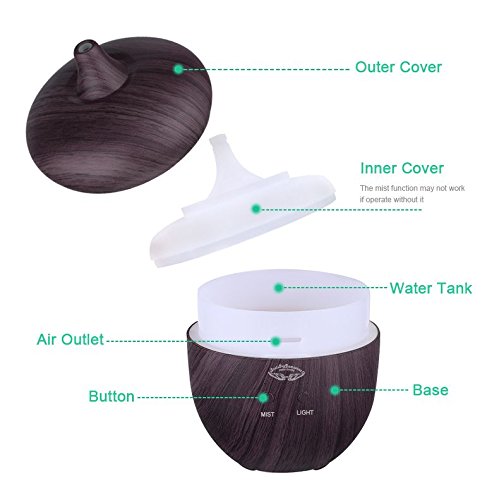 - ELEGANT, BEAUTIFUL DESIGN YOU WILL INSTANTLY LOVE -The natural dark wood grain look and discreet lighting make this wonderful essential oil diffuser muchmore than just a way to create a soothing atmosphere.It's actually an elegant piece of modern interior design, and a perfect addition to the decor of your living room, bedroom, yoga room, spa, office, or any other space!