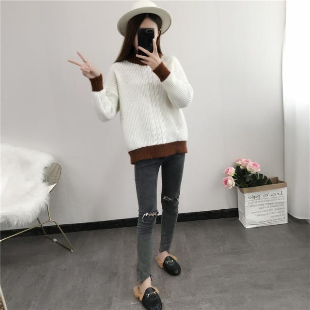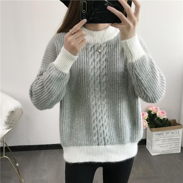 フロントはケーブル編みをほどこし、自然と縦長シルエットに◎