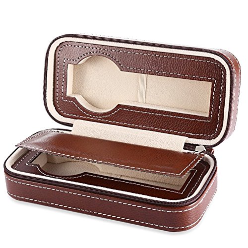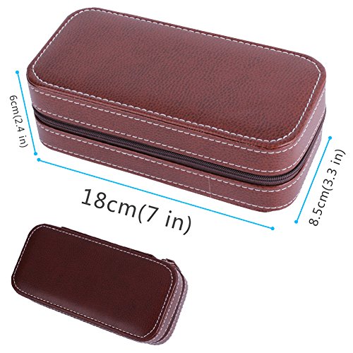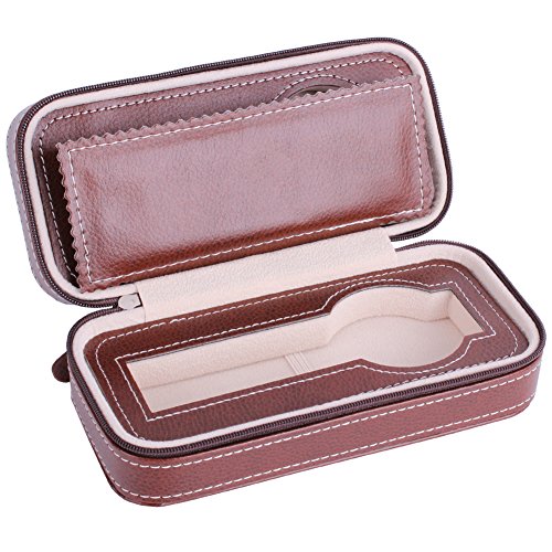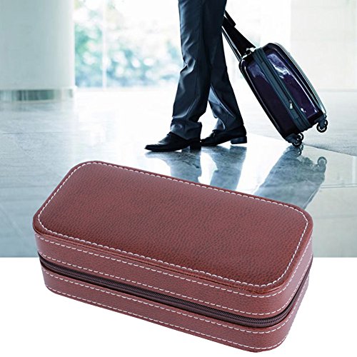 Portable Watch Organizer Box-Nasion.V Dual Slots Travel Watch Storage Case Leatherette Zippered Watch Holder Collector Case Jewelry Storage Organizer Box - Brown
