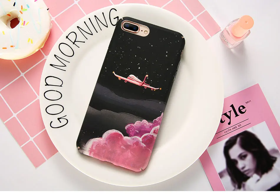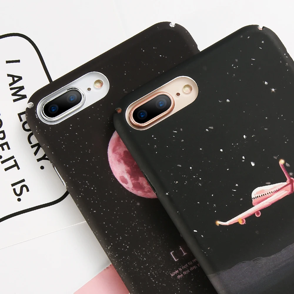 Features:Cute Cartoon Black Planet Airplane Matte Hard PC Cover Fundas