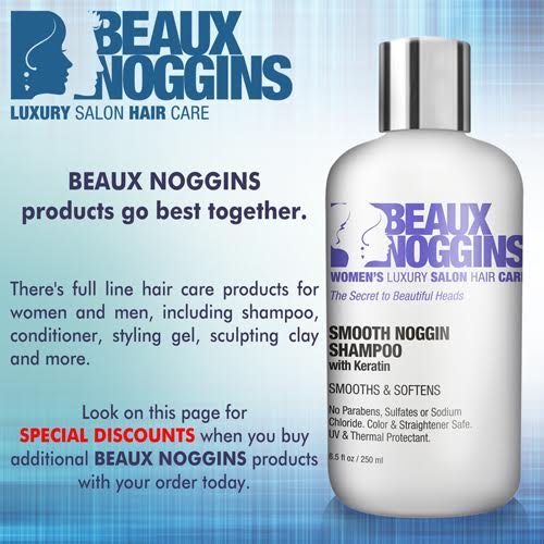 -. Feature : + SEE & FEEL THE DIFFERENCE WITH BEAUX NOGGINS KERATIN SHAMPOO-- Isolated from New Zealand wool, keratin carries special peptides that tell cells to heal and grow, helping to repair, protect and condition hair. This Keratin-infused shampoo gently smooths and softens while adding strength to prevent breakage. Plant extracts help reduce frizz and fly-aways, leaving the hair silky and shiny. Removes build-up on hair and scalp. Great for wavy, curly and frizzy hair. / + NOT ALL HAIR CARE IS CREATED EQUAL. Discover the extraordinary BEAUX NOGGINS difference today and you'll NEVER go back to ordinary hair care products again. IT'S A PROMISE! Your hair will look amazing and feel like you've just walked out of a high-end salon or spa-- without the price tag. For the ultimate all natural hair care keratin treatment, choose the duo of Smooth Noggins keratin shampoo and conditioner together / + ALL NATURAL HAIR CARE MADE IN THE USA with natural ingredients that are good for you and your hair. Leaves hair soft and shiny. Free of Parabens, Sulfates & Sodium Cloride and NEVER TESTED ON ANIMALS! GREAT FOR SOFT CURLS AND EXTENSIONS. Adds volume, conditions hair without build-up, smoothes and de-frizzes hair. Safe for colored, straightened and chemically-treated hair. UV & Thermal Protectant. / + BEAUX NOGGINS products go best together. There's full line hair care products for women and men -- including shampoo, conditioner, styling gel, sculpting clay and more. Look on this page for SPECIAL DISCOUNTS when you buy additional BEAUX NOGGINS products with your order today. / + DISCOVER THE BEAUX NOGGINS DIFFERENCE! There's nothing better--and we'll prove it! Put our Beaux Noggins products to the test and if you're not BLOWN AWAY by how incredible your hair looks and feels-- WE'LL BUY YOUR EMPTY BOTTLE BACK FROM YOU with our 100% LOVE IT or LEAVE IT GUARANTEE.