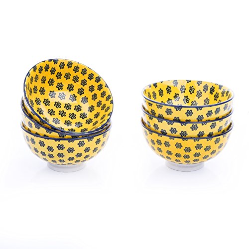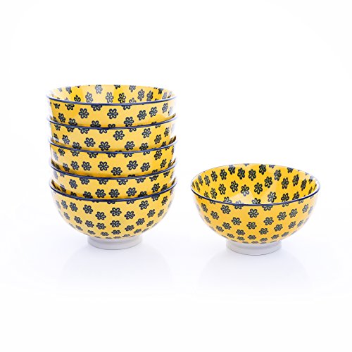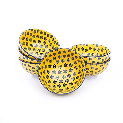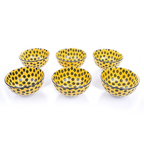 Vancasso 5" Yellow Patterned Porcelain Dining Serving Bowl Set of 6