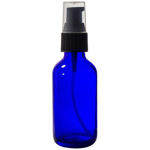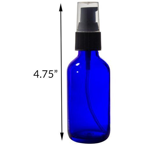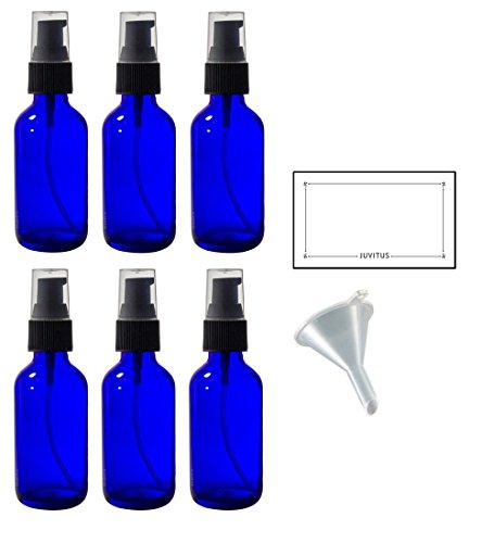 2 oz Cobalt Blue Glass Boston Round Treatment Pump Bottle (6 pack) + Funnel and Labels for essential oils, aromatherapy, food grade, bpa free