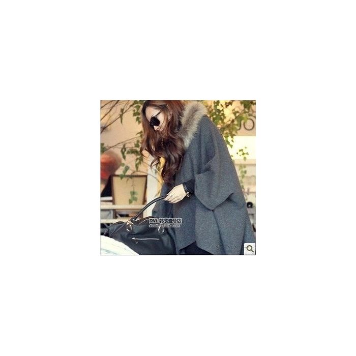 퍼(fur) 후드부 후드 판초 코트 레이디스