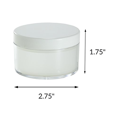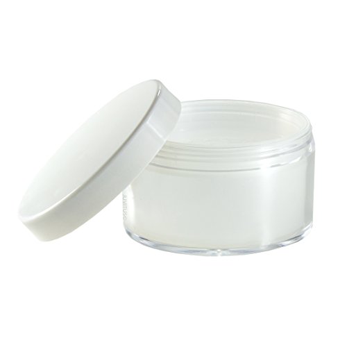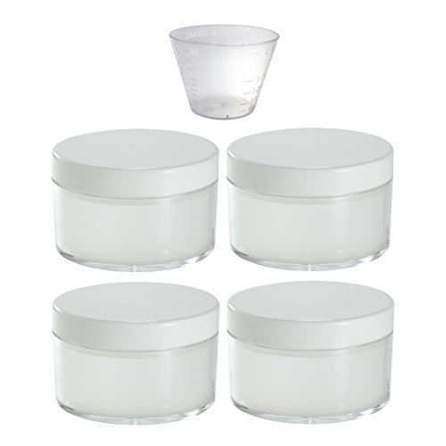 Includes 4 - 80 ml / 3 oz Frosted Empty Refillable Powder Cosmetic Polystyrene Jars with Smooth White Foam Lined Cap + Measuring Cup