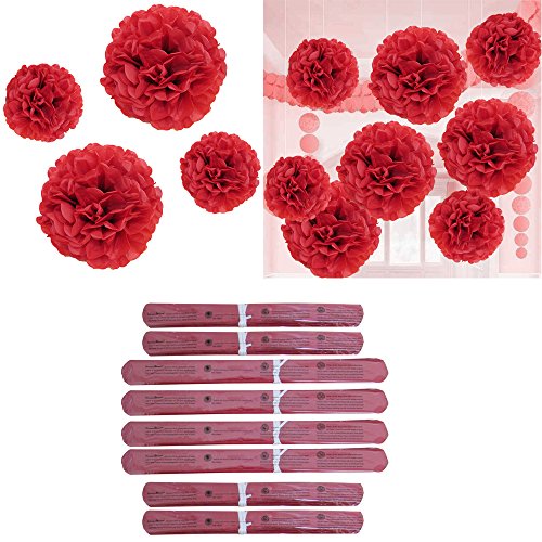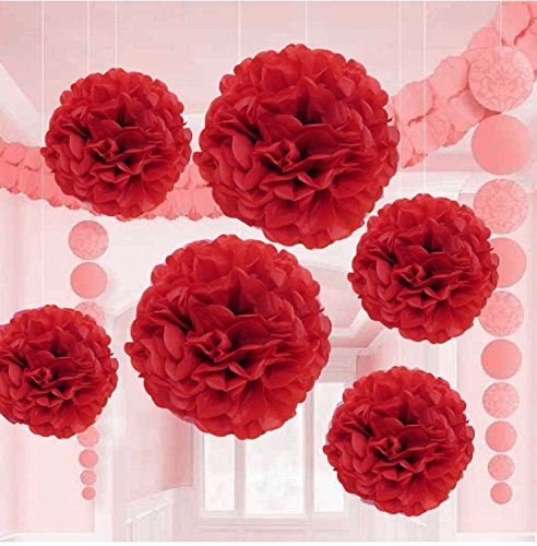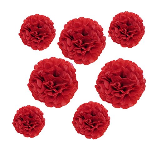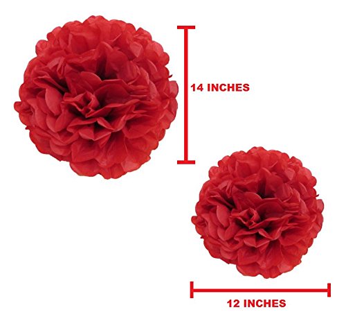 - PACK INCLUDES: 8 pieces of red tissue paper flower pom pom balls. 4 balls of each size, ( 4x12" and 4x14" ). Each paper ball comes separately packed so you can use as much as you want and the rest you can storage for later use.