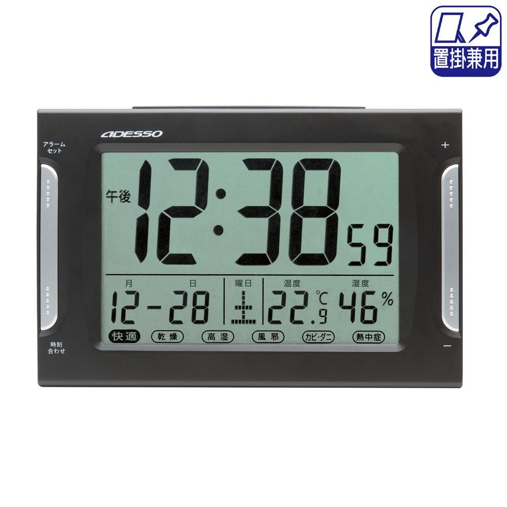 fk094igrjsカビ、ダニ、熱中症などの各種注意報表示機能付きの大画面電波時計です サイズ 高120×幅180×奥行45mm 個装サイズ:13×19×6cm 重量 275g 個装重量:333g 素材・材質 ABS樹脂 仕様 置き掛け兼用 使用電源:単3乾電池×2 付属品 取扱説明書 保証書(保証期間:1年) 単3乾電池×2 製造国 中国 大画面電波時計 カビ、ダニ、熱中症などの各種注意報表示機能付きの大画面電波時計です