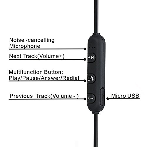 Pikeman Wireless Sports Bluetooth V4.1 In-Ear Stereo Magnet Earbuds Headset Sweatproof Kopfhorer Kopfhorer mit Mikrofon fur iPhone, Android Smartphones und andere Bluetooth (Elegantes Schw