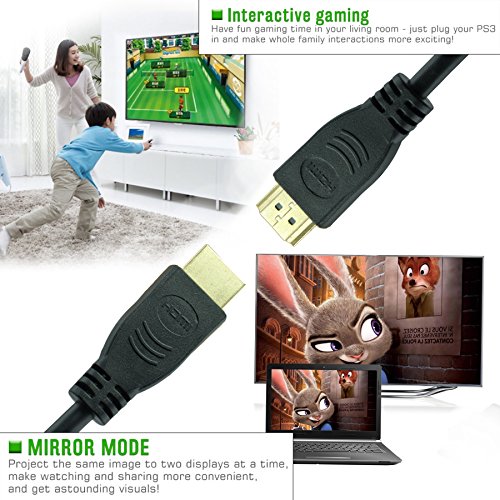 (2 Pack) Super Slim HDMI Cable TV Lead 1.4 High Speed Ethernet 3D Full HD 1080p - Support All HDMI Devices - Black - 30cm