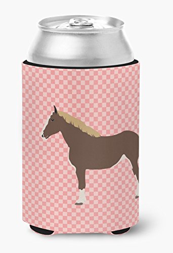 Caroline's Treasures BB7906CC Percheron Horse Pink Check Decorative, Can Hugger, Multicolor
