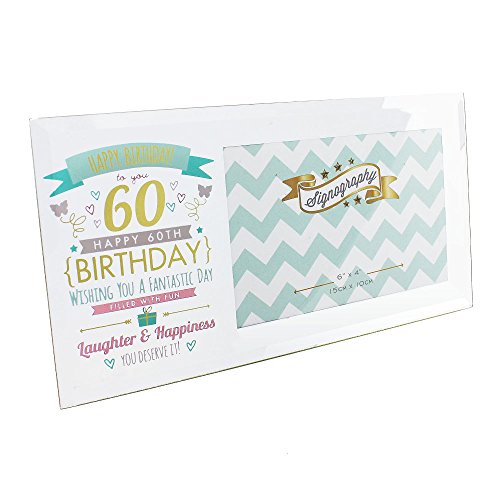 -. Feature : A vibrant modern 60th birthday photo frame from Haysom Interiors. / This holds a 6" x 4" photograph and overall measurements are approximately: 10" x 5". / Free standing only, not suitable for wall hanging. / A perfect gift for a friend or relative. / Beautifully designed mirrored frame with 60th birthday quote and illustration detail!
