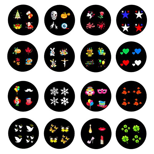 - 16 DIFFERENT CREATIVE PATTERNS: Providing the perfect decorative atmosphere for any occasion, the VARDI CELEBRATION LIGHT DISPLAY has 16 different slides that can be changed easily to match Christmas, Halloween, Easter, Valentine’s Day, birthday, or any occasion; select from 1 to 4 images of Christmas trees, Santa, pumpkins, ghosts, skeletons, cakes, balloons, presents, bunnies, crosses, snowflakes, maple leaves, 3-leaf clovers, hearts, stars, doves, butterflies, clowns, and more.