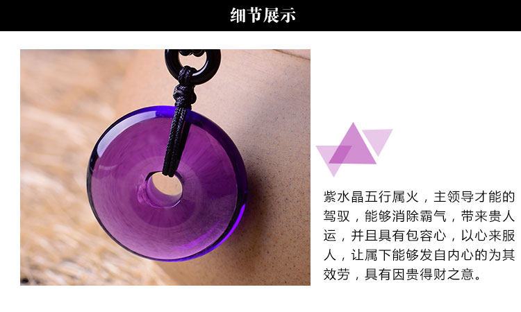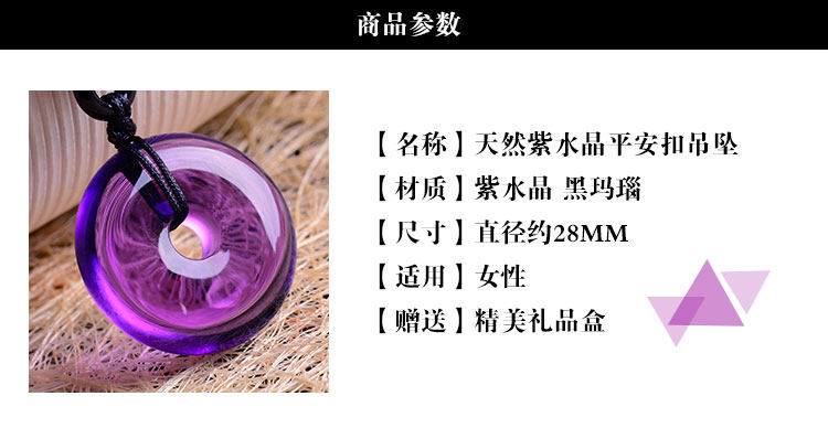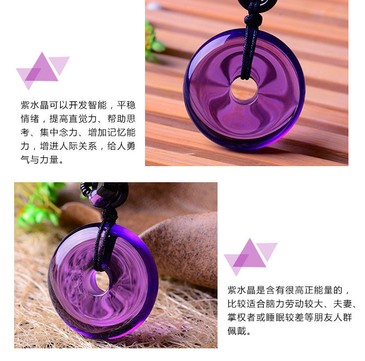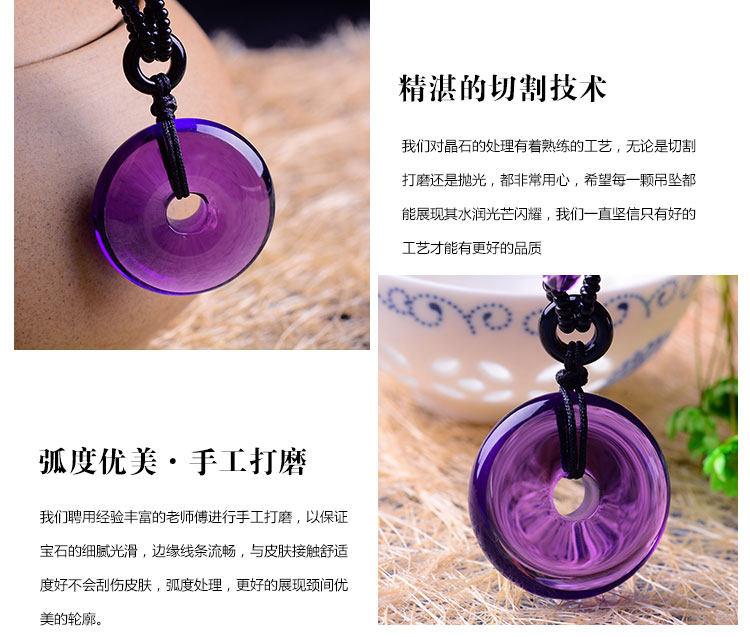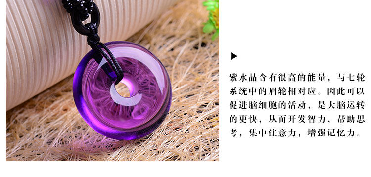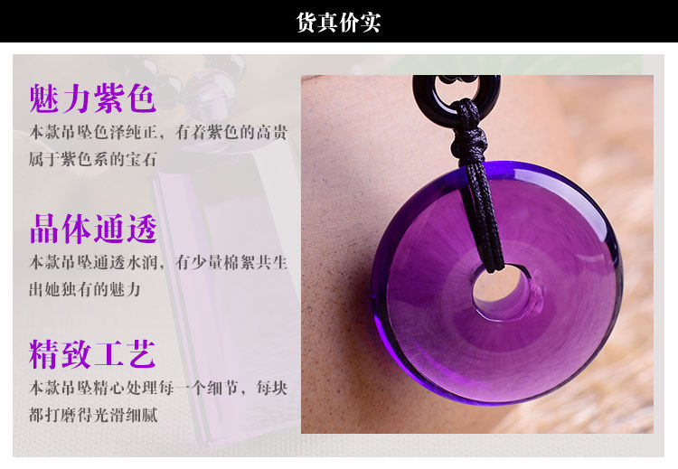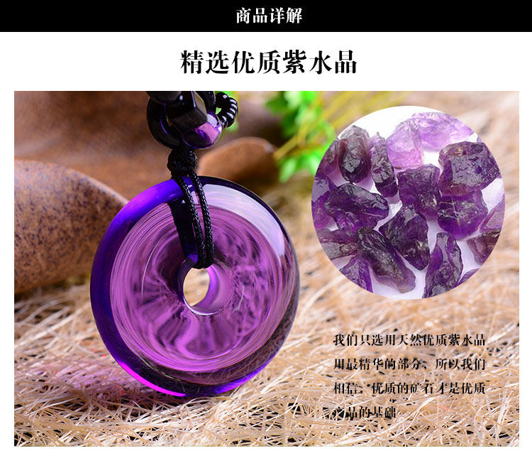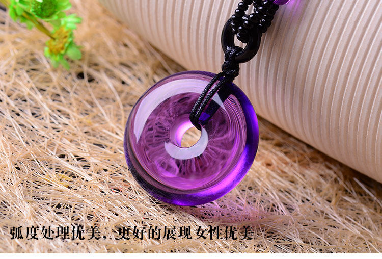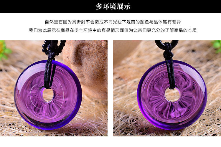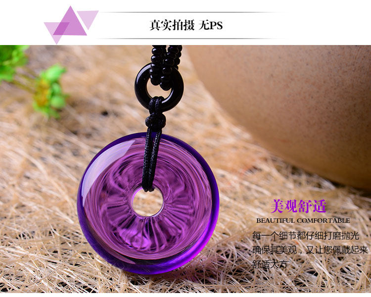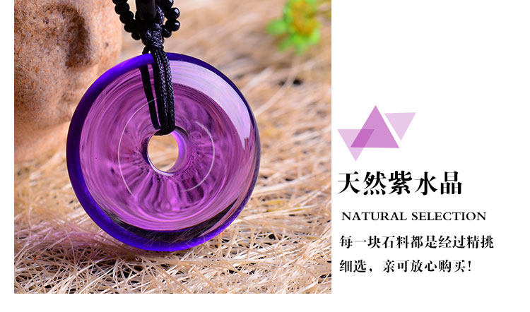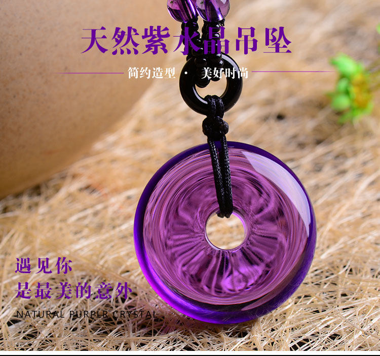 正品天然紫水晶平安扣项链吊坠爱情魔力石贵族护身符